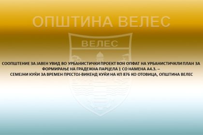 Општина Велес објавува јавен увид за новиот урбанистички проект кој предвидува формирање…