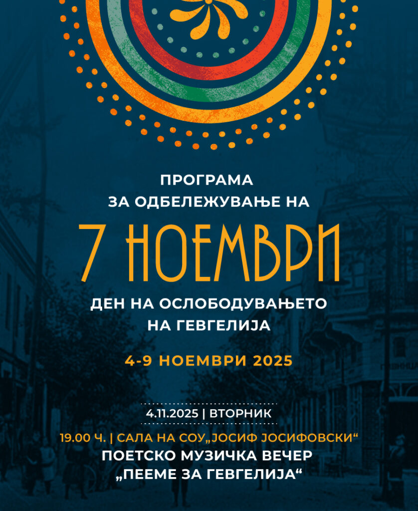 Општина Гевгелија и годинава ќе го одбележи 7 Ноември- Денот на ослободувањето на Гевгелија со богата и разновидна програма што ќе се реализира во периодот од 4 до 9 ноември 2025 година. Чествувањето опфаќа поетски, музички, театарски и уметнички содржини во рамки на манифестацијата „Град на култура за 2025 година“, како и традиционални свечени активности што го одразуваат историското и општественото значење на празникот.