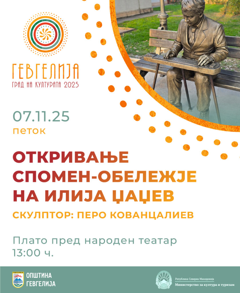 Во рамки на програмата „Гевгелија град на културата за 2025 година“ и одбележувањето на Општинскиот празник- 7 Ноември, Денот на ослободувањето на Гевгелија, ќе се одржи свечено откривање на спомен-обележјето на Илија Џаџев, истакнат гевгелиски музичар, автор и долгогодишен професор по географија, кој оставил длабока трага во културниот и образовниот живот на градот.