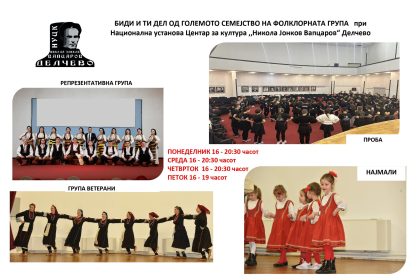 Упис на нови членови во фолклорната секција при НУЦК „Никола Јонков Вапцаров“ – Делчево