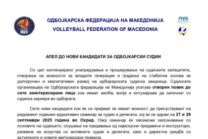 СО на ОФМ со отворен повик за нови кандидати за одбојкарски судии
