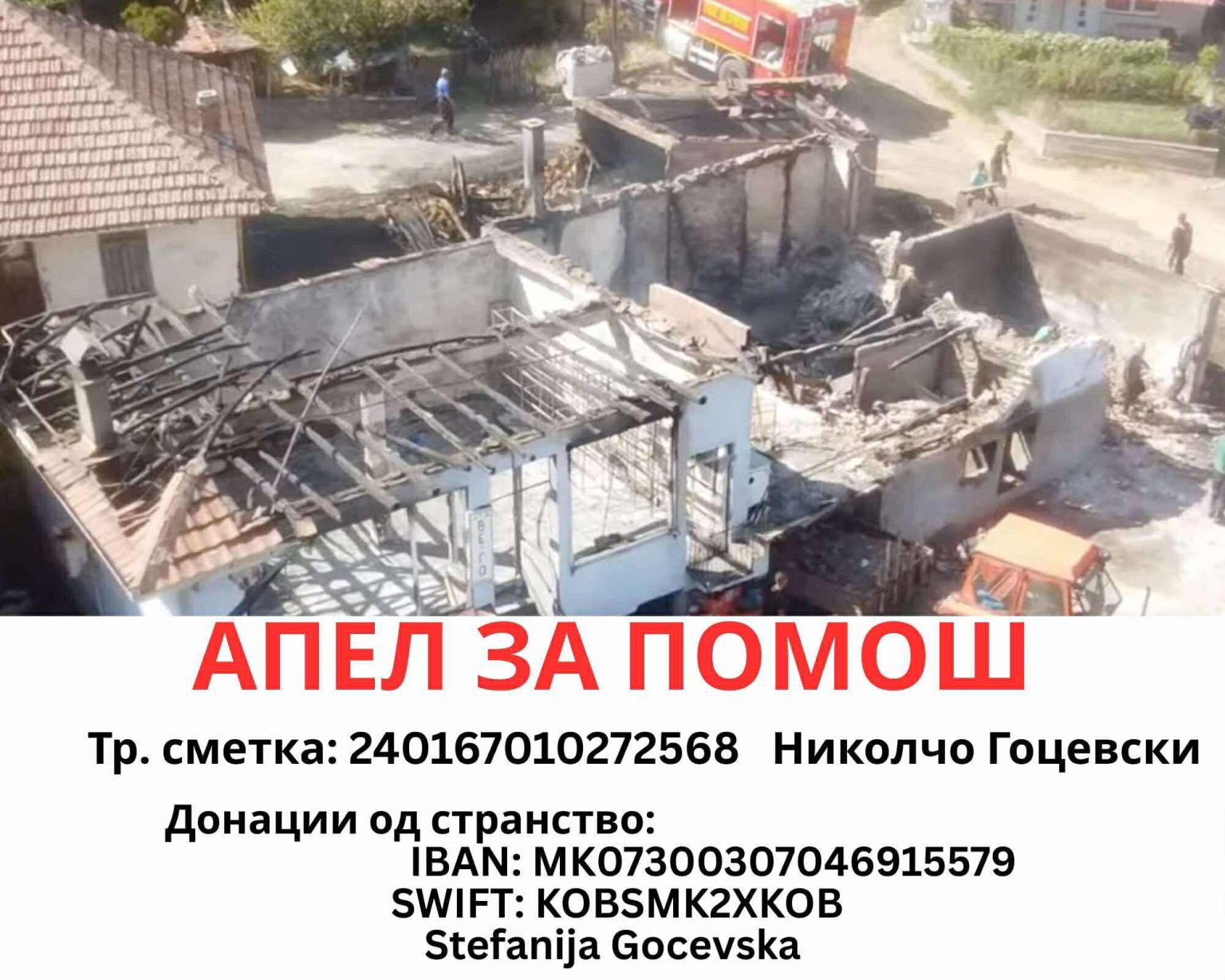 Трагедија го погоди семејството Гоцевски од село Разловци, Делчево, откако пожар целосно ја уништи нивната куќа и продавница, семеен бизнис кој се градел повеќе од три децении. За среќа, нема повредени, но материјалната штета е огромна.