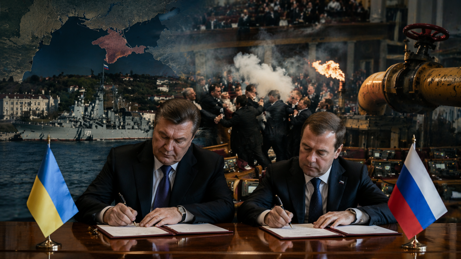 Суштината на договорот беше едноставна: Украина добива попуст на гасот, а Русија добива продолжување на престојот на својата Црноморска флота во Севастопол, на Крим, до 2042 година. Во време кога економијата на Украина беше под притисок, ова изгледаше како практично решение. Но зад економската логика стоеше длабока политичка и стратешка пресметка.