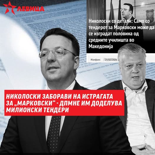 Александар Николоски, потпретседателот на ВМРО-ДПМНЕ, во минатото обвинуваше за „историски криминал“ поврзан со тендерите на „Марковски“. Левица укажува на контрадикција, бидејќи денес, новото раководство на ЕСМ, предводено од Лазо Узунчев, продолжува да доделува тендери на оваа компанија.