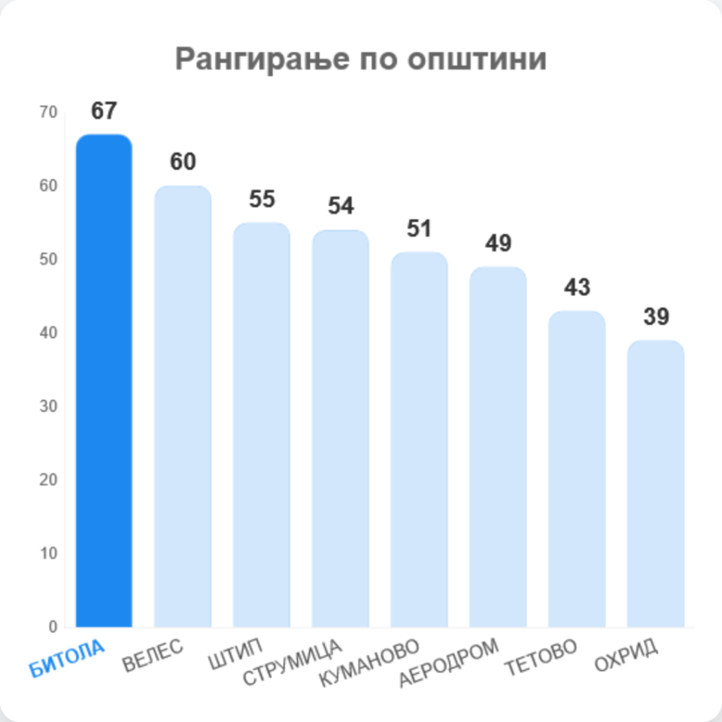 Индексот, кој е показател и за граѓанското партнерство, ја мери навременоста, јасноста и достапноста на сите информации. Ова признание потврдува дека Битола е пример за тоа како граѓаните можат ефикасно и лесно да ги користат општинските услуги, градејќи цврста доверба во локалната самоуправа, притоа давајќи поттик за понатамошна надградба и уште подобра функционалност.