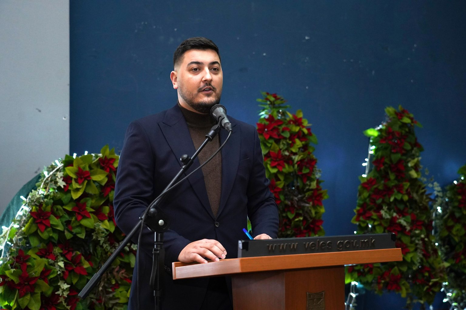 На крајот од годината кога се сумираат сите постигнати резултати, Општина Велес традиционално ги наградува најуспешните, најталентираните и најхуманите граѓани. Од името на градоначалникот Марко Колев, заменик градоначалничката Елизабета Митревска Ангелеска им посака добро здравје и уште поголеми успеси во новата 2026 година. Таа ја упати својата новогодишна честитка до сите присутни.