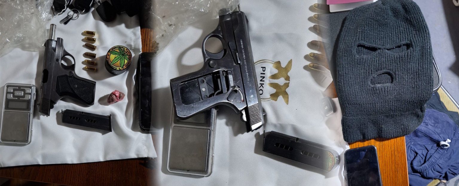 При претрес извршен со судска наредба во неговиот дом на подрачјето на Центар, биле пронајдени и одземени марихуана, дигитална вага, пиштол, рамка со куршуми, како и пари и други предмети поврзани со истрагата.