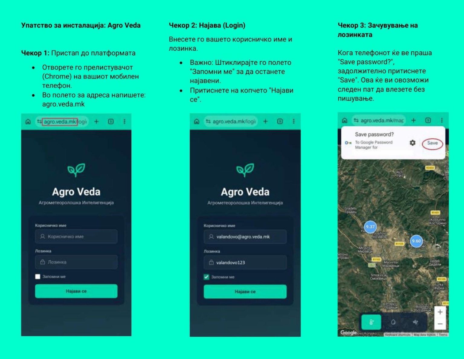 Новата апликација е достапна преку веб прегледувач и е дизајнирана да биде интуитивна и лесна за користење. Земјоделците ќе можат да се најават со својот профил, користејќи ја адресата negotino@agro.veda.mk и лозинката negotino123. Оваа иницијатива е дел од напорите на општината да ги поддржи локалните производители и да им овозможи подобар пристап до информации кои се клучни за нивната работа.